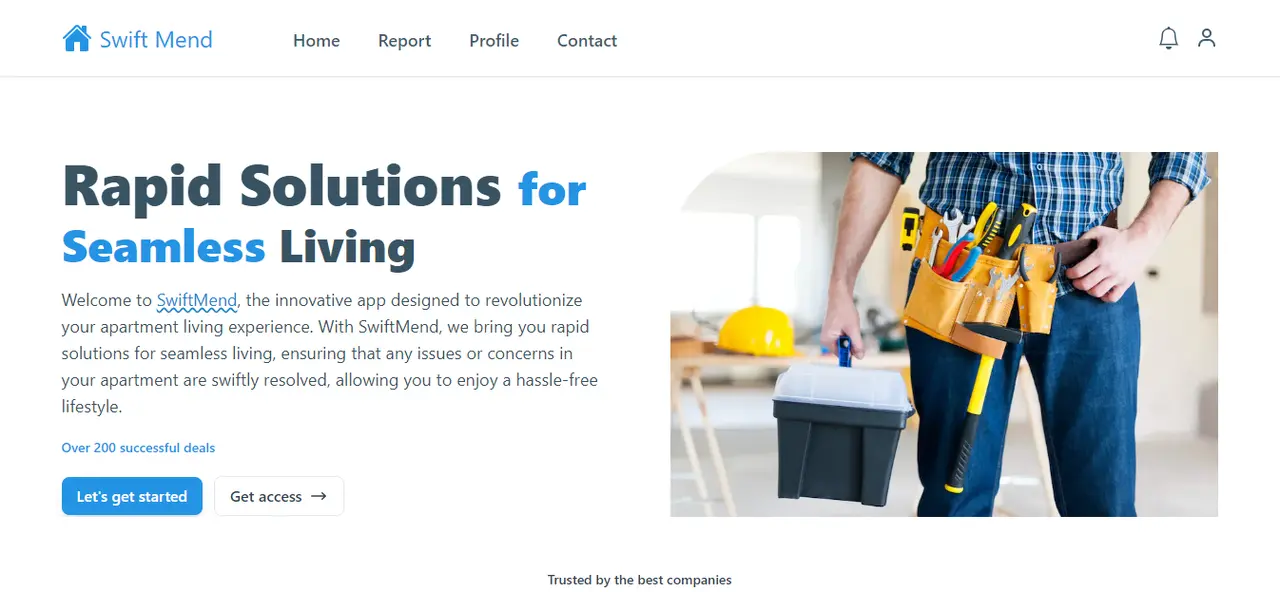 Welcome to SwiftMend, the innovative app designed to revolutionize your apartment living experience. With SwiftMend, we bring you rapid solutions for seamless living, ensuring that any issues or concerns in your apartment are swiftly resolved, allowing you to enjoy a hassle-free lifestyle.